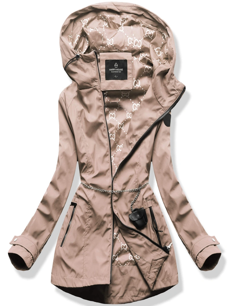 Perłowo różowa damska unikalnie pikowana kurtka ze ściagaczami