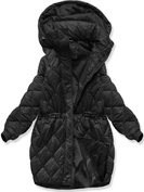 Czarna długa zimowa unikalnie pikowana damska kurtka z kapturem