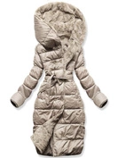 Beżowa długa zimowa unikalnie pikowana damska kurtka z kapturem