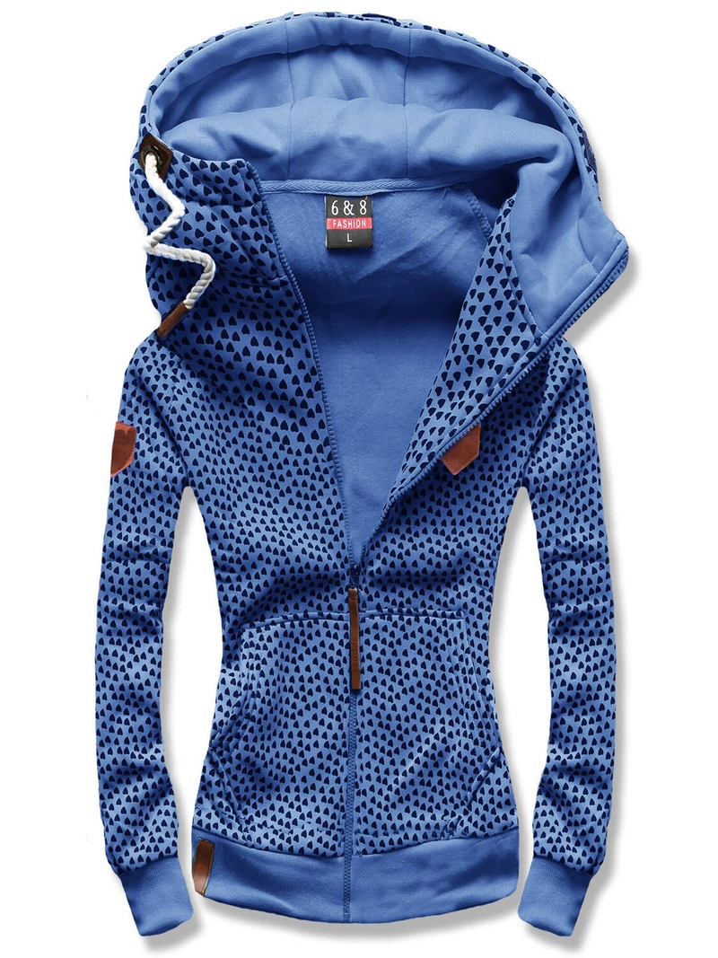 Ciemnoniebieska zapinana na suwak damska bluza z kapturem w serduszka