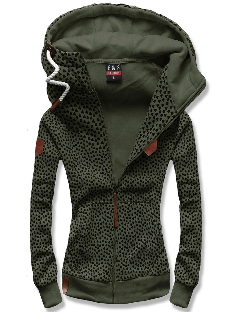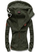 Ciemnozielona zapinana na suwak damska bluza z kapturem w serduszka