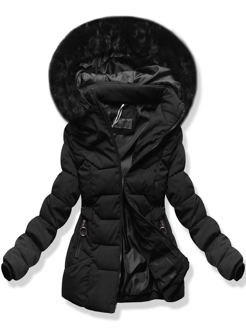 Czarna rewelacyjna damska zimowa kurtka z kapturem netmoda