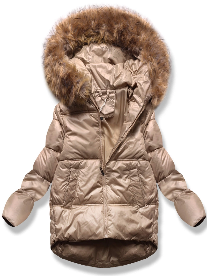 Beżowa damska kurtka z genialnym futrzanym kapturem