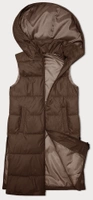 Capppuccino długi pikowany bezrękawnik damski kamizelka z kapturem