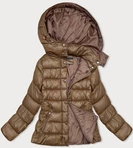 Brązowa krótka zimowa pikowana kurtka z kapturem