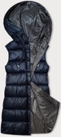 Granatowa zimowa pikowana długa ciepła kurtka z kapturem kołnierzem