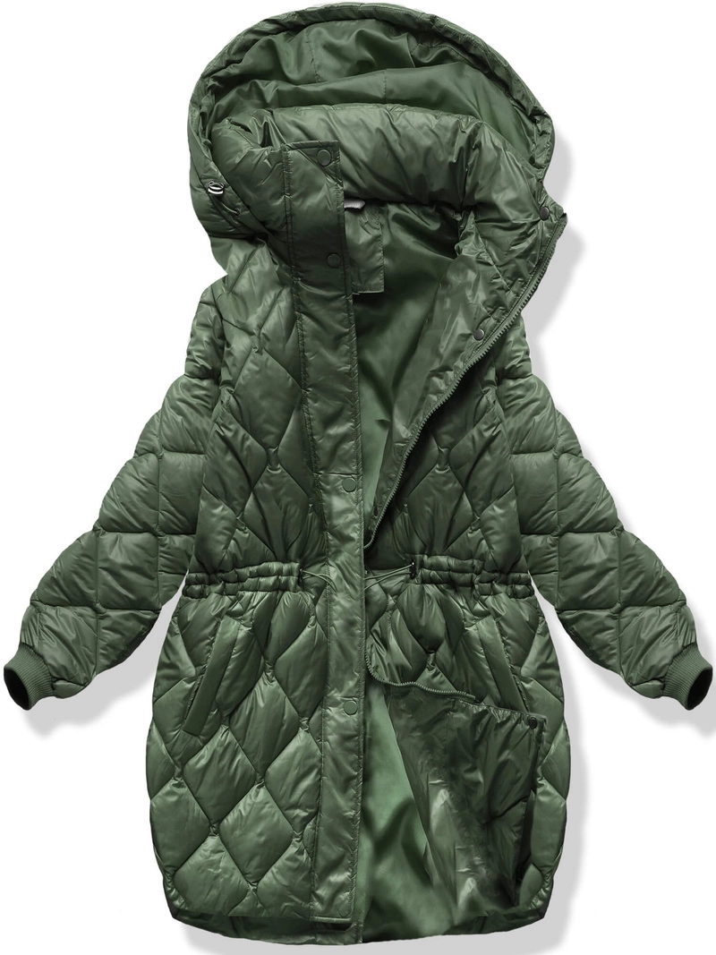 Zielona zimowa damska kurtka pikowana z paskiem