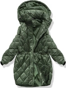 Zielono szara dwustronna zimowa damska kurtka z kapturem