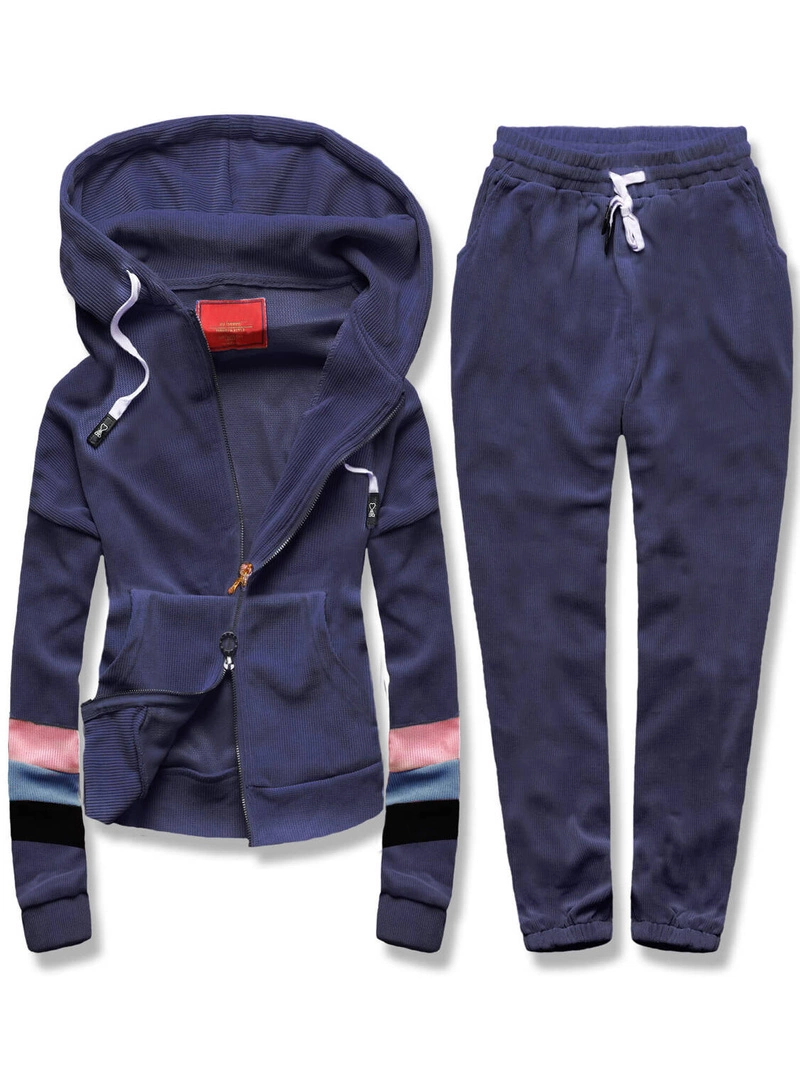 Śliwkowy dres komplet z kapturem ze wstawkami