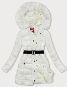 Biała dwustronna zimowa pikowana kurtka futerko
