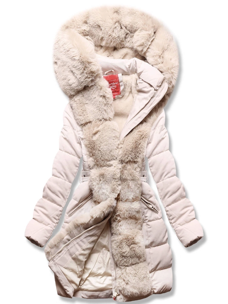 Ecru zimowa pikowana kurtka płaszczyk + futro