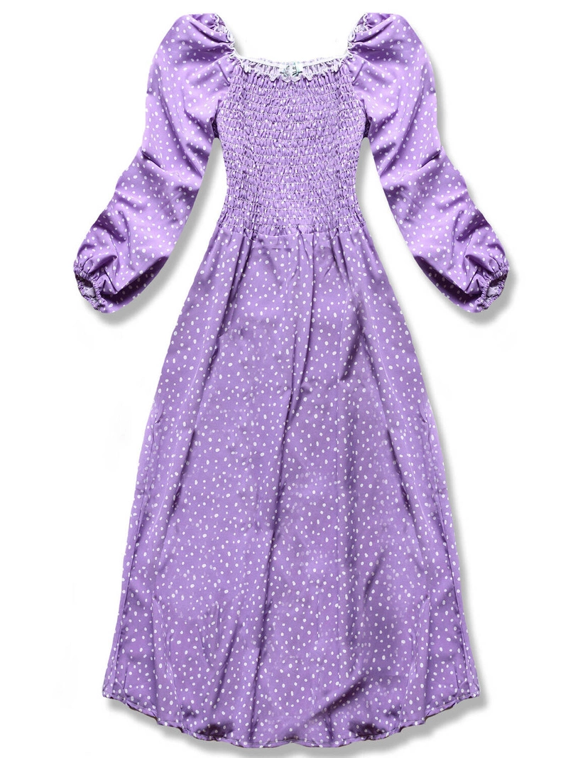 Fioletowa cudowna sukienka damska z bufiastymi rękawami
