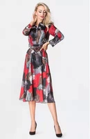 Czerwona sukienka z długim rękawem wiązana w pasie