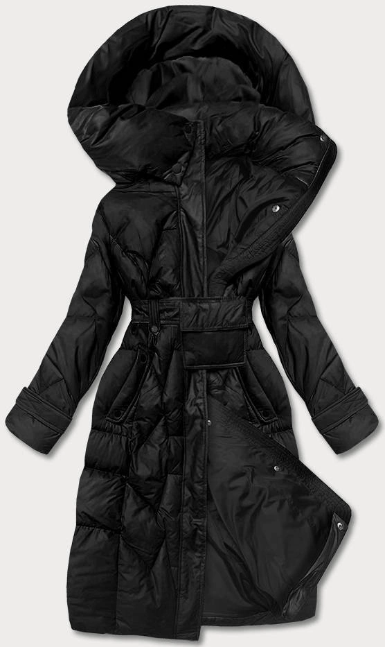 Czarna zimowa długa puchowa kurtka płaszcz z kapturem