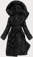 Czarna długa pikowana damska kurtka płaszcz z kapturem