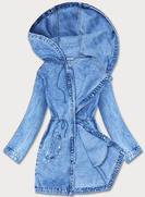 Niebieska narzutka kurtka płaszcz denim jeansowa z kapturem