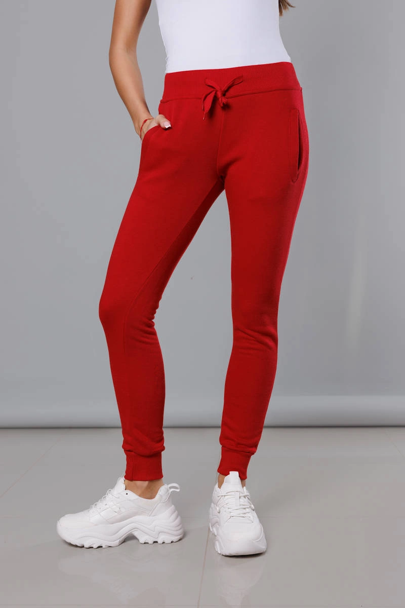 Czerwone damskie dresowe spodnie casualowe z kieszeniami i ściągaczem
