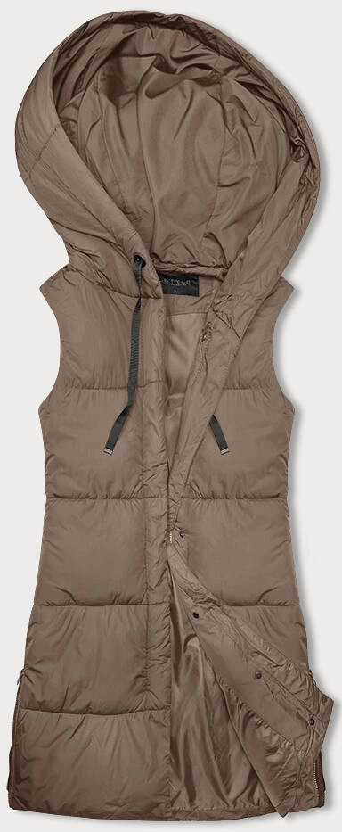 Brązowy puchowy ciepły bezrękawnik na suwak ze stójką kamizelka