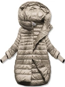 Beżowa damska pikowana przejściowa kurtka dzianinowe ściągacze