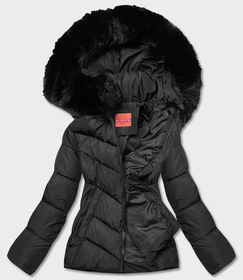 Czarna kapitalna pikowana zimowa kurtka z futerkiem