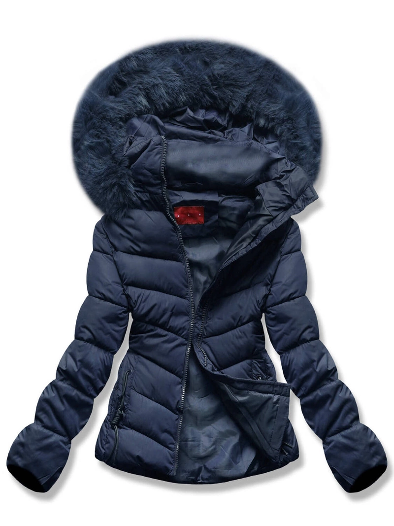 Granatowa zimowa damska ciepła kurtka z kapturem