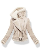 Beżowa skórzana damska krótka kurtka na beżowym futerku