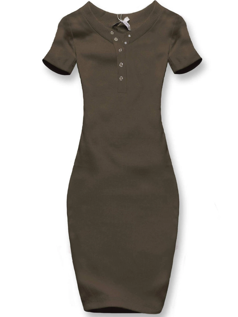 Khaki sukienka prążkowana dekolt na guziki