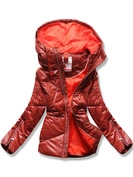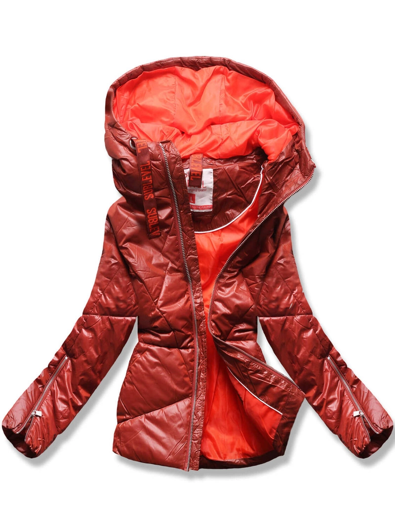 Brązowo pomarańczowa przejściowa zapinana na suwak kurtka damska z kapturem