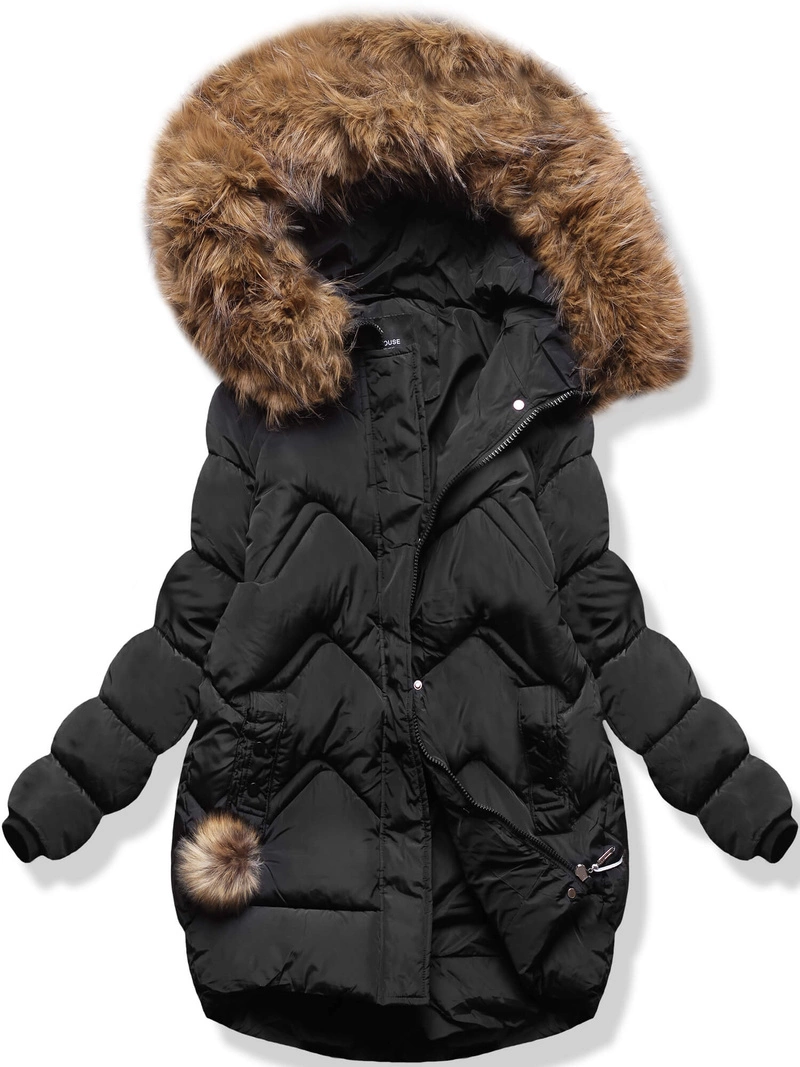Czarna cudowna pikowana damska kurtka zimowa futro