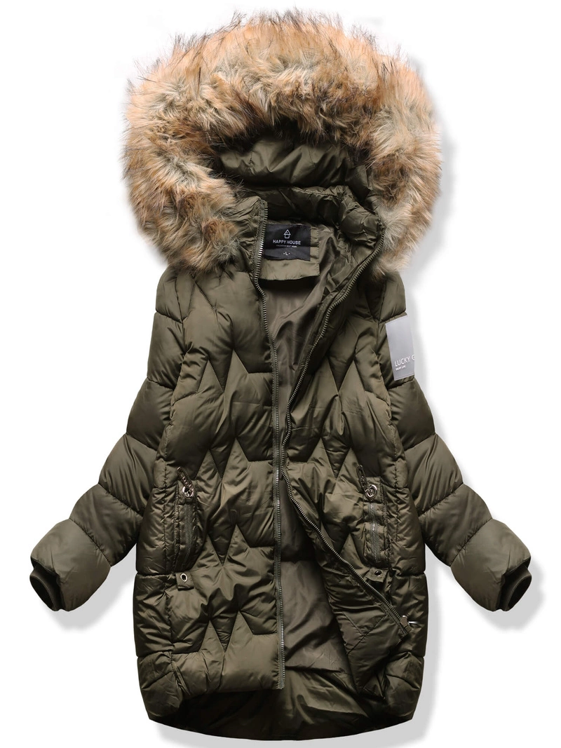 Khaki śliczna trapezowa pikowana zimowa damska kurtka z kapturem