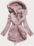 Krótka kurtka damska zimowa z zamkami antyczny róż (7750)