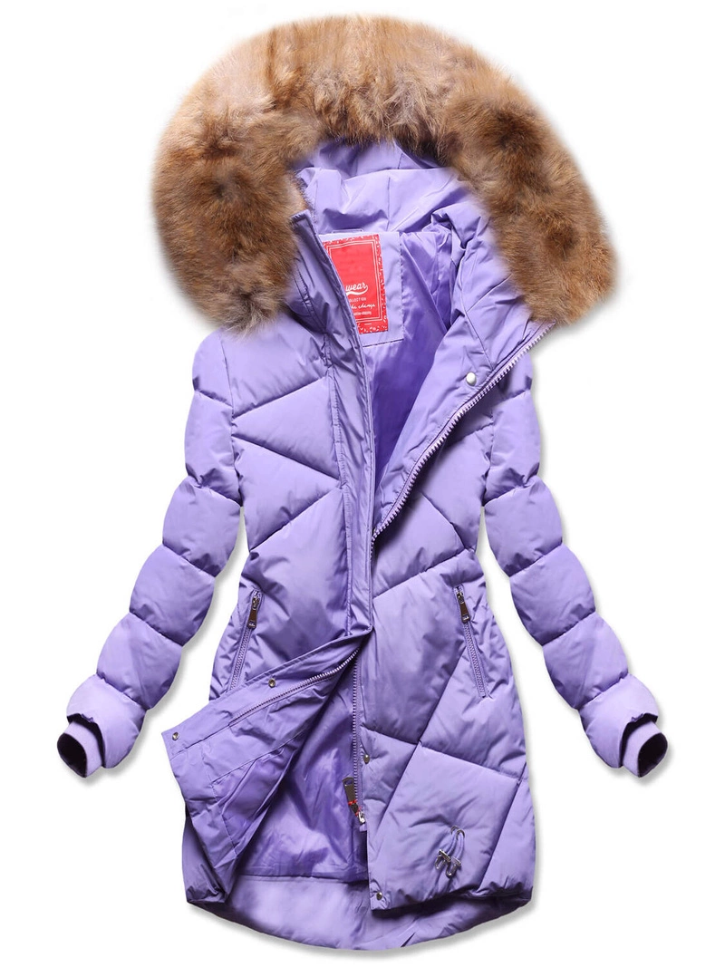 Fioletowa zimowa kurtka pikowana płaszczyk z kapturem