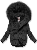 Czarna dwukolorowa damska kurtka pikowana z kapturem
