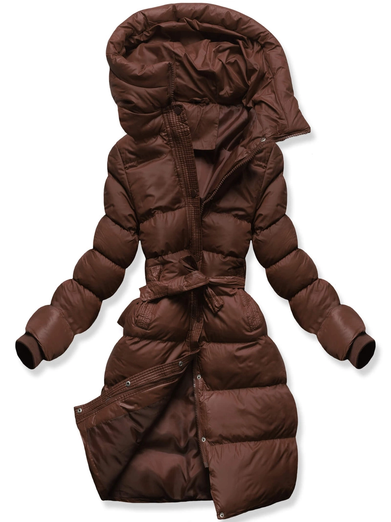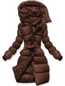 Brązowa genialna zimowa pikowana kurtka damska z kapturem
