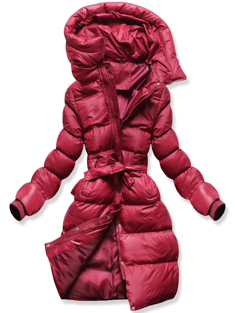 Bordowa genialna zimowa pikowana kurtka damska z kapturem