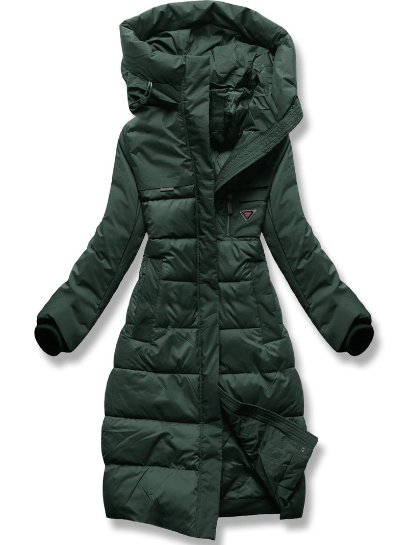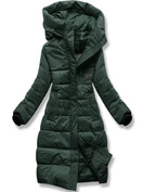 Ciemnozielona genialna długa zimowa damska kurtka z kapitalnym kapturem