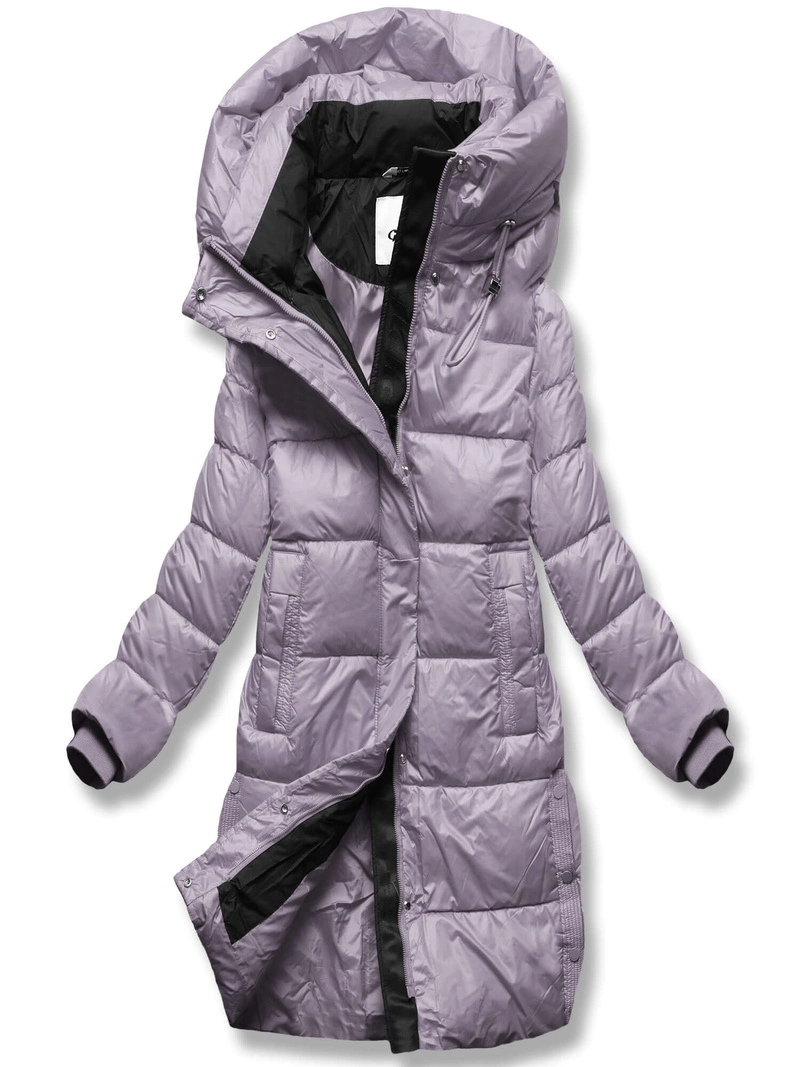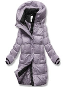 Wrzosowa zimowa pikowana kurtka z kapturem i kołnierzem