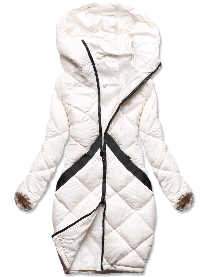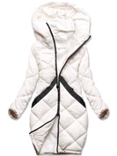 Biała zimowa kurtka pikowana płaszczyk z kapturem