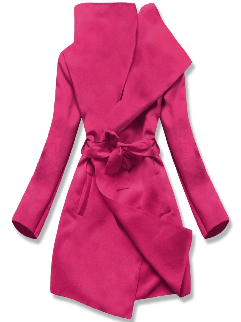 Fuksjowy lekki stylowy wiązany płaszczyk narzutka