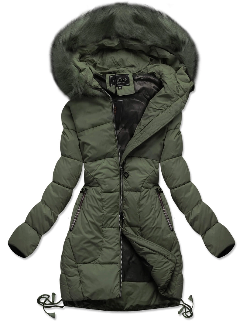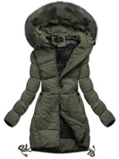 Zielona czadowa zimowa pikowana damska kurtka z kapturem
