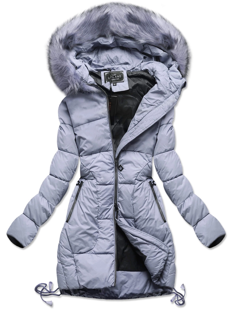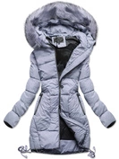 Szara długa ciepła rewelacyjna zimowa kurtka damska płaszczyk z kapturem