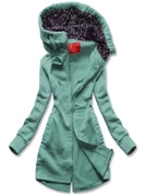 Miętowa parka damska kurtka zimowa na futrze z kapturem