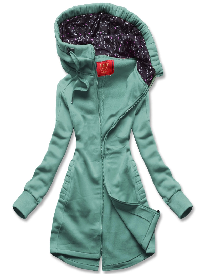 Szarozielona rewelacyjna damska bluza typu long z kapturem