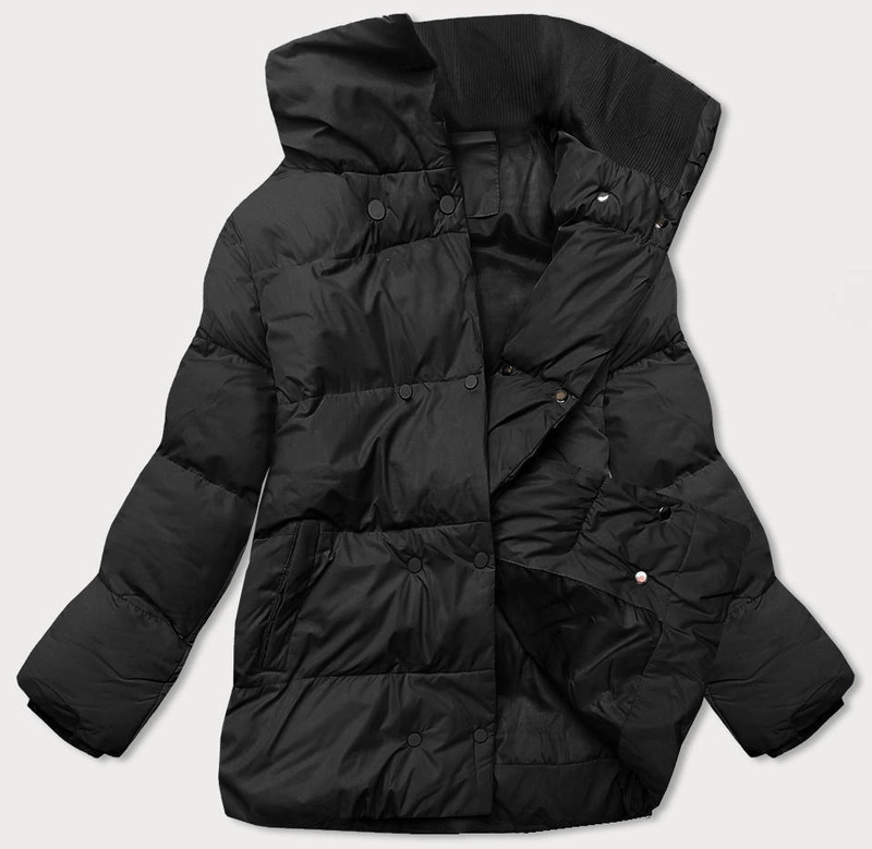 Czarna zimowa pikowana kurteczka z kołnierzem