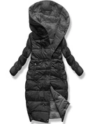Czarny pikowany płaszcz zapinany na zatrzaski z paskiem