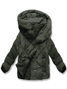 Khaki długa pikowana zimowa kurtka płaszczyk z kapturem srebrna wstawka
