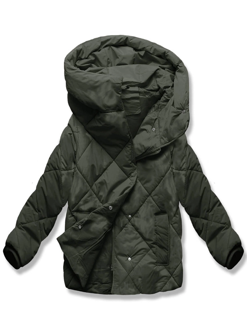 Ciemnozielona zimowa pikowana w jodełkę kurtka płaszczyk z kapturem