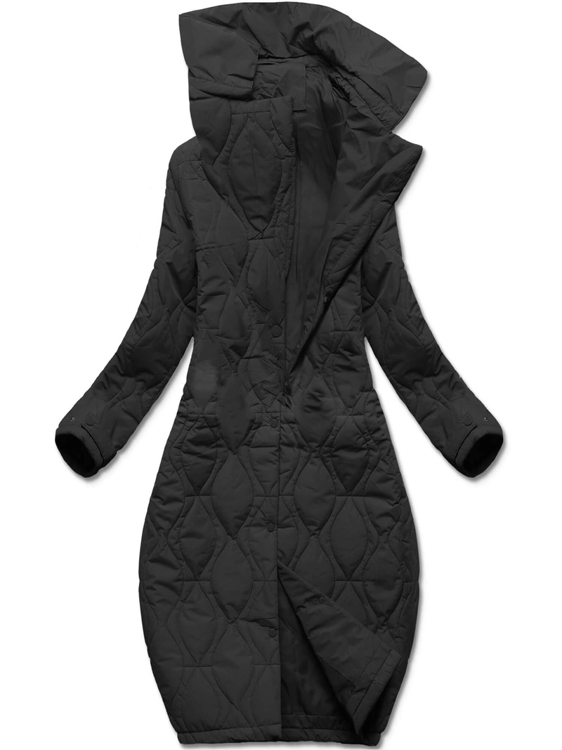 Czarny damski luźny pikowany płaszcz