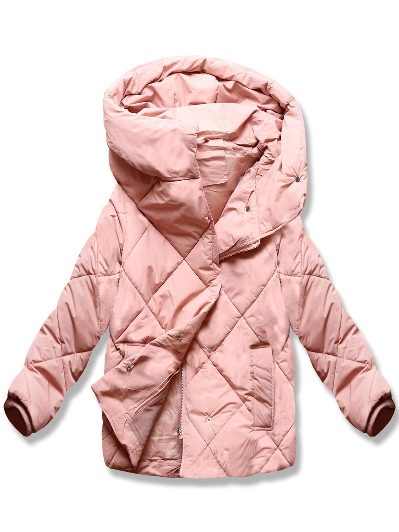 Fioletowa zimowa kurtka pikowana płaszczyk z kapturem