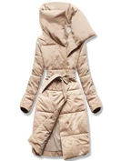 Beżowa długa pikowana leciutka kurtka płaszczyk z kapturem